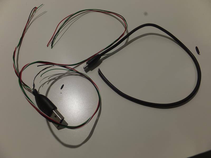 Del cable mini usb, sacaré el conector y los cables para los conexiones: Soldamos los cables a las placas en paralelo: Prueba de carga: superada!