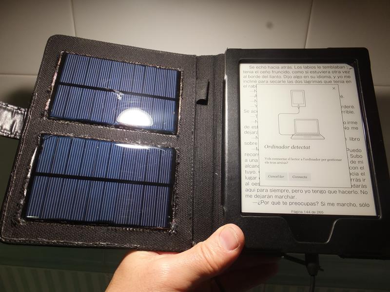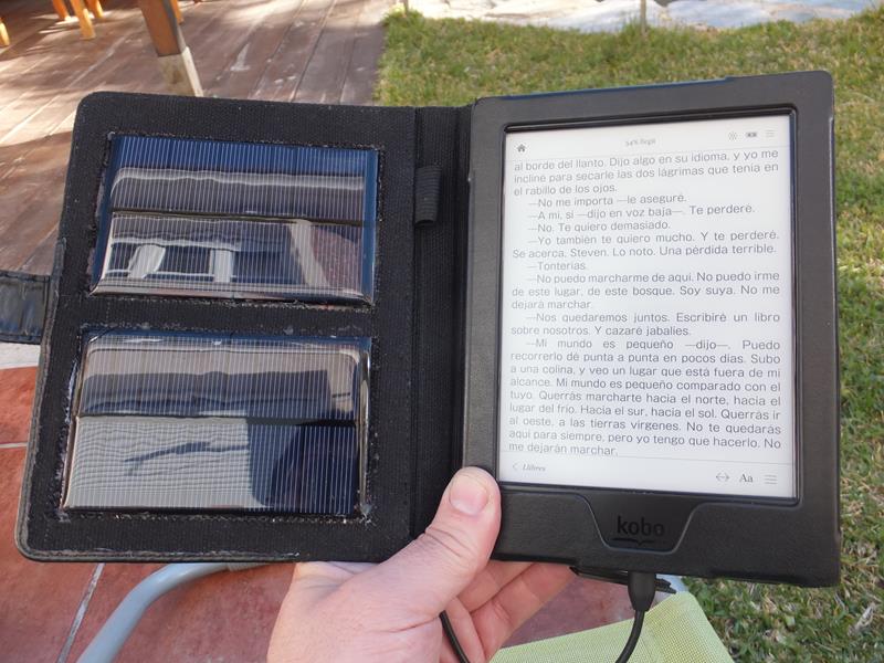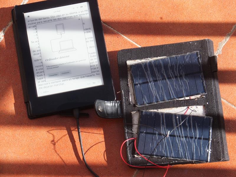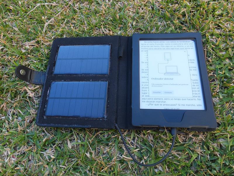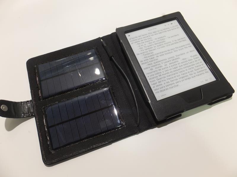 Os presento mi distracción de una tarde de domingo: construir una funda con placas solares para carga del lector. No tiene mucho sentido por la larga duración de las baterías, pero me apetecía hacerlo. Materiales: Una funda barata (10-15 eur. yo la tenía sin usar), un cable micro USB (unos 4 eur, yo lo tenía de algún movil) y un par de placas solares de 5v (unos 8 eur las dos en aliexpress)
