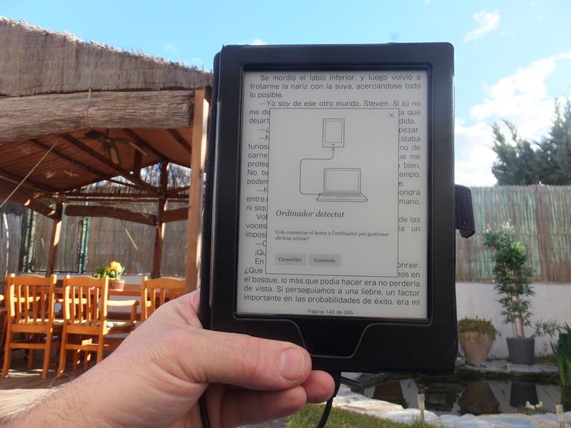 Prueba con luz artificial: Con luz natural: Podéis ver el icono de carga: Y a leer! Se me olvidó el imán para el cierre autómático. Ahora ya está colocado. Ha de ser por encima de la placa ya que por debajo no tenía suficiente potencia para apagar el lector.